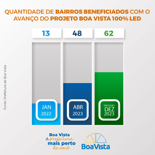 “Com esse investimento conseguimos dar mais tranquilidade para população andar nas ruas e frequentar nossas praças. Além disso, contribuímos com o meio ambiente, pois diferentes das lâmpadas convencionais, os LEDs não têm itens tóxicos na composição e ainda reduzimos 30% o consumo de energia”, ressaltou o Prefeito de Boa Vista, Arthur Henrique.