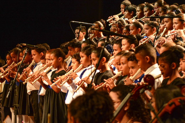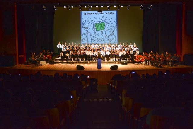 Mais de 60 crianças que estão iniciando a vida musical, e participam do coral de vozes brancas e orquestra de flauta doce no Instituto Boa Vista de Música, se apresentaram para centenas de espectadores durante programação do Ciclo das Quintas