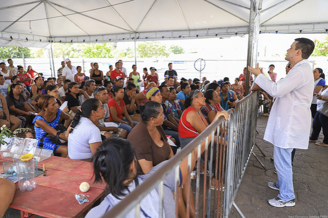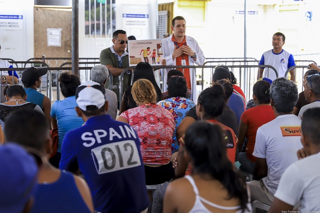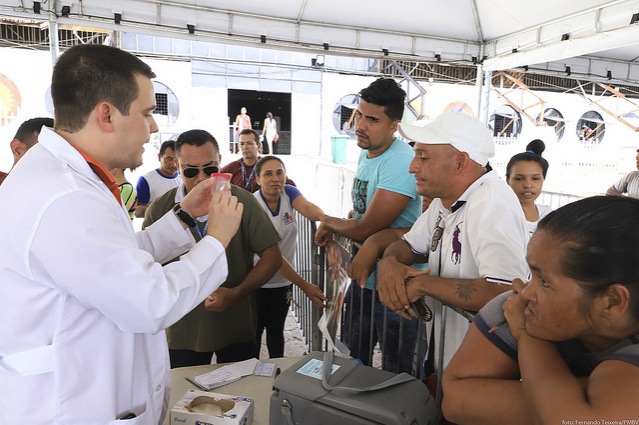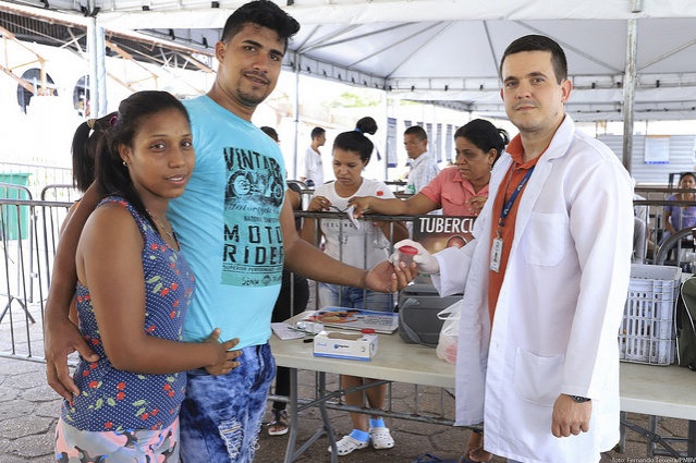 O casal de venezuelanos YandresDios, 20, e Juan Del Vall, 22, acompanharam as orientações sobre as formas de transmissão da tuberculose, cuidados e diagnóstico da doença. Os dois também aproveitaram para fazer o exame.