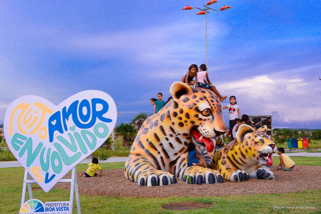 A prefeita Teresa Surita entregou mais uma extensão da Selvinha Amazônica, nesta sexta-feira, 30. O local escolhido para as duas onças pintadas, uma com sete metros e a outra com três metros, foi a Praça Turística Genésio da Costa Aguiar, no Conjunto Pérola.