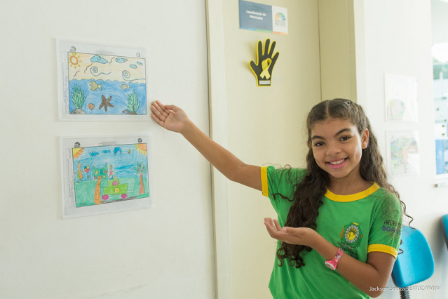 “ Fiz um desenho pelo Meio Ambiente porque tem várias pessoas que vivem jogando lixo nas praias e rios e isso afeta muito os animais. Eu fiz vários tipos de peixes, com água e plantas. Muito legal a disciplina de artes, as professoras ensinam muito e quando eu crescer quero me formar em desenho, porque acho muito bonito o trabalho dos artistas e desenhistas” , declarou.
