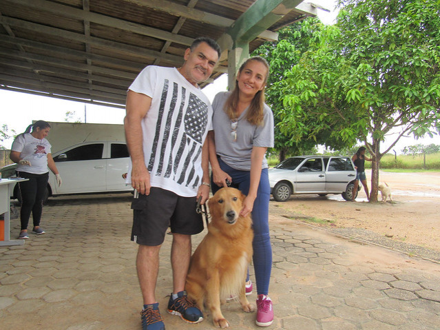 O casal de dentistas Carla Lima e Raimundo Oliveira mora no Paraviana e aproveitou para levar o Sebastian, um labrador de cinco anos para se vacinar.
