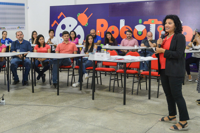 As atividades desse sábado se iniciaram no Centro de Ciência, Tecnologia e Inovação (CCTI). As visitantes conheceram um pouco do programa Desbravadores Digitais, aplicado nas escolas municipais. Os estudantes apresentaram os projetos desenvolvidos na área de tecnologia em sala de aula por meio da metodologia de ensino baseada no Desing Thinking , com didáticas sob a educação híbrida e 3.0.