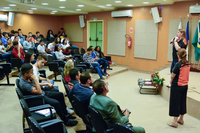 A capacitação ocorreu no auditório do SENAC RORAIMA com a participação de alunos do curso 'Assistente Administrativo' do Programa de Qualificação Jovem Aprendiz, com idades entre 14 e 18 anos.