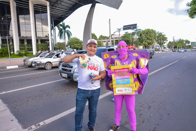 Na tarde dessa quinta-feira, 28, os profissionais da Secretaria Municipal de Saúde (SMSA) levaram uma ação de conscientização sobre a prevenção da sífilis, no sinal em frente à Assembleia Legislativa.