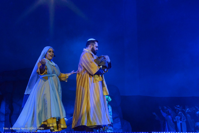 O espetáculo teatral e musical com 1h15 de duração, que já está na 7ª edição, foi adaptado para apresentar a trajetória da Sagrada Família, e teve como base a obra “Os Saltimbancos” de Chico Buarque.