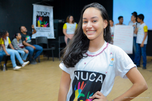 Yohana Sampaio, 17 anos, é presidente do Núcleo de Cidadania de Adolescentes. Após buscar conhecimentos sobre o direito de votar, ela e seus amigos levaram o assunto para o encontro.