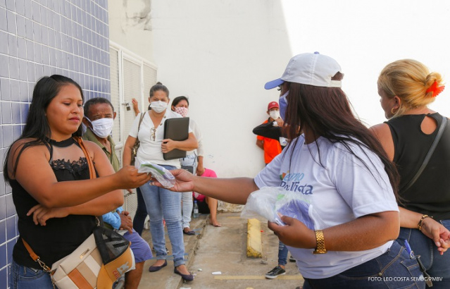 Ao todo, 25 equipes dos centros de referência social (CRAS) da Secretaria Municipal de Gestão Social (Semges) orientaram os clientes bancários, pedindo que todos mantenham a distância recomendada para evitar o contágio pelo coronavírus, além de entregar a máscara para quem não estava usando, principalmente quem faz parte do grupo de risco.