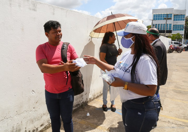 A Prefeitura de Boa Vista fez na manhã desta quinta-feira, 23, mais uma ação de conscientização e distribuição de máscaras na cidade. Dessa vez, aconteceu nas proximidades das agências da Caixa Econômica Federal no Centro e em casas lotéricas. A medida tem como objetivo combater o avanço da pandemia do novo coronavírus (Covid-19) na capital.