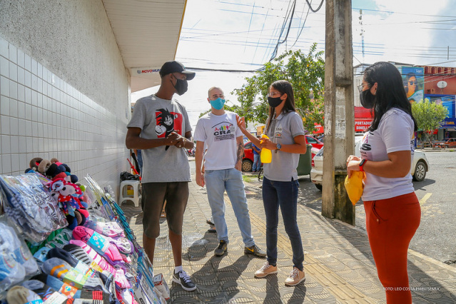 Equipes da Smges percorreram os locais entregando máscaras, orientando comerciantes e ambulantes sobre a disposição de mercadorias nas calçadas por conta da movimentação de pessoas, além de informações e cuidados para evitar a contaminação pela covid-19.