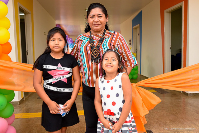 A indígena Leonice Padrinho, 30, ficou encantada com o novo prédio da escola em que a sua filha Rosiara, de 7 anos, estuda. Ela relembrou que no início a escola era improvisada em um malocão, depois passou para uma estrutura menor e agora dispõe de uma escola-modelo, mesmo padrão das unidades urbanas.