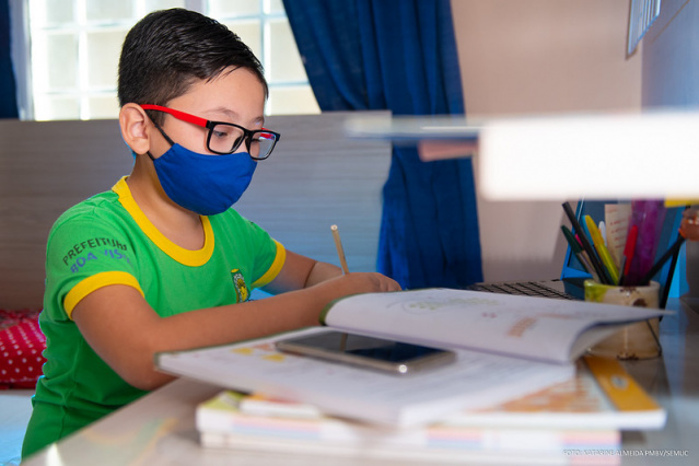 Já Ezequiel, embora esteja com saudades da sua escola (Carmem Eugênia Macaggi), sabe a importância de manter o distanciamento social neste período de pandemia. “É bom estudar em casa, mas também é bom estudar na escola. Estamos tristes porque não vemos mais os amigos, os professores. Todo mundo sabe que não podemos arriscar nossa vida por uma aula. Precisamos ter cuidado e ter ciência”, disse Ezequiel.