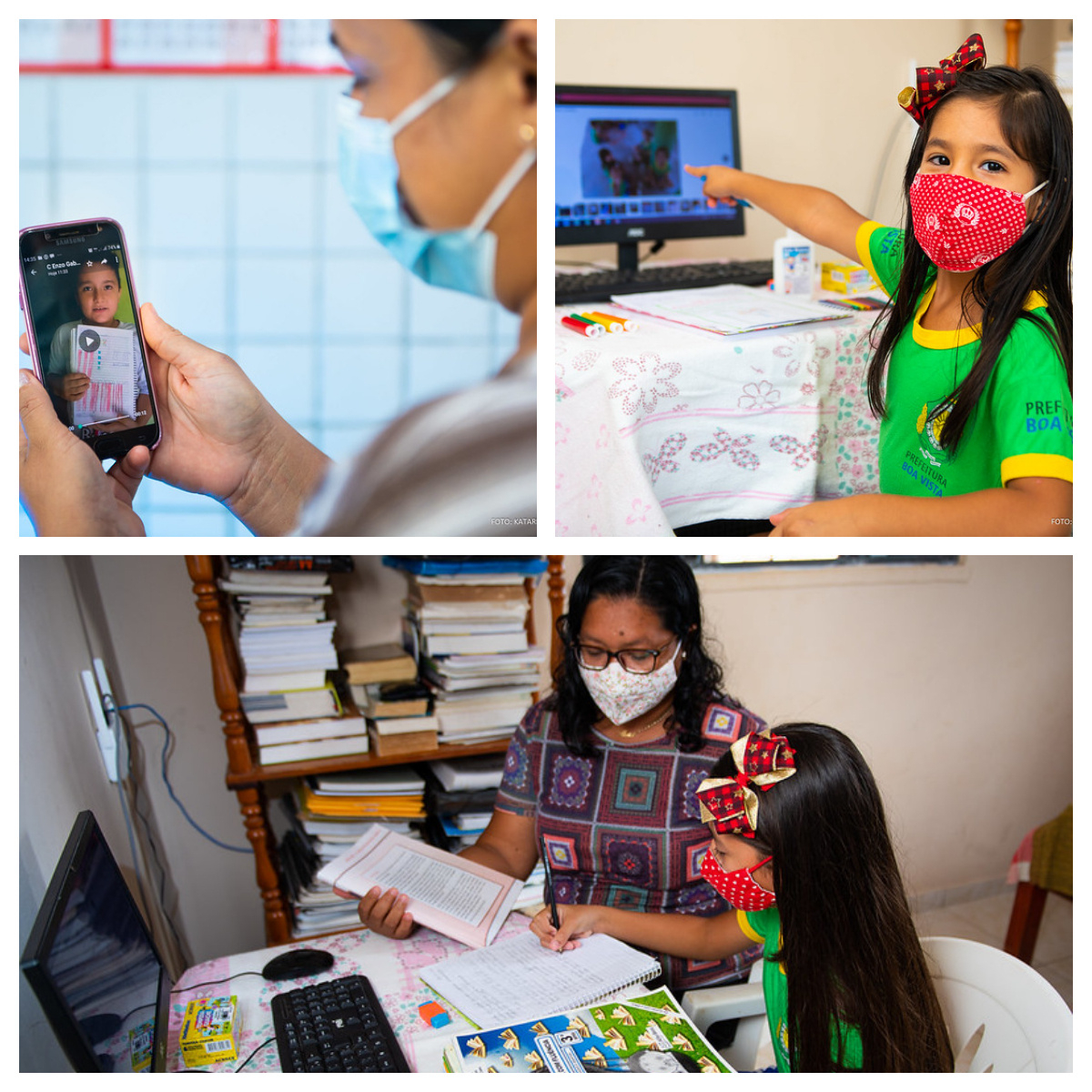 A semana começou agitada para os alunos da rede municipal de ensino. As férias acabaram, mas, infelizmente, a pandemia ainda não. O ensino remoto vem melhorando o vínculo familiar e estreitando os laços com a escola. De casa, pais, professores e alunos interagem por meio da tecnologia, os estudantes cumprem suas tarefas diárias com o uso dos livros didáticos e materiais de apoio.