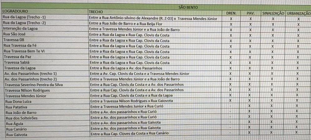Confira os trechos do bairro São Bento contemplados com as obras