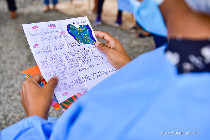 Durante a semana de acolhida dos alunos com o início do Ano Letivo 2021, a Escola Municipal Senador Darcy Ribeiro, promoveu uma ação para comemorar o Dia das Mães. Com a atividade “Carta para uma mãe especial”, cerca de 35 cartinhas escritas pelos alunos foram entregues às servidoras mães da Unidade de Saúde do Equatorial nesta sexta-feira, 7.