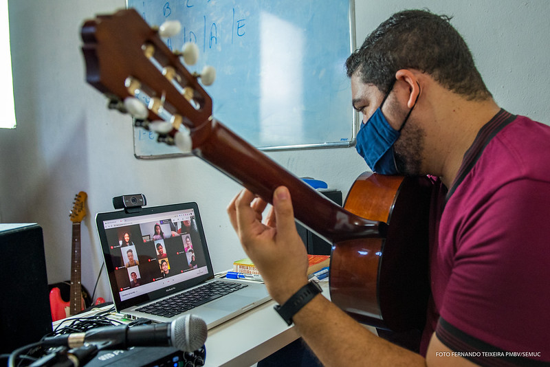 Para o professor de violão Celso Lima, as aulas remotas demandam um maior comprometimento principalmente por parte dos alunos, que devem direcionar toda a atenção às disciplinas ensinadas e se esforçar para não perder o foco das atividades lecionadas.