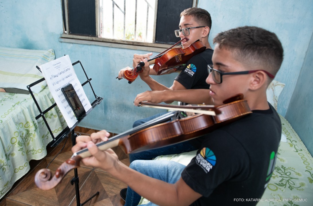 Nesse novo momento, o apoio da família é fundamental para que os novos músicos tenham um melhor aprimoramento nos estudos. É o caso dos gêmeos Pedro Lucas e Flávio Luís Rocha. Envolvidos com a música desde os oito anos, hoje, aos 17, são exímios violinistas. E isso com o incentivo da mãe, Kelly Patrícia, que em nenhum momento deixou que eles perdessem o interesse pela arte, mesmo durante a pandemia.