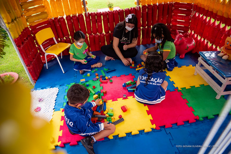 Durante a pandemia, a Escola Waldinete de Carvalho criou espaços interativos como a Casinha Multibrinque, o Mural do Abraço, Cantinho da leitura e Sala de Jogos para a criançada