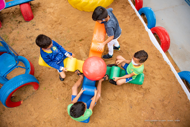 Os estudantes chegam e já se deparam com o Mural do Abraço, feito com proteção plástica e aberturas que permitem um caloroso abraço nos colegas e professores. Em duas horas de visitações, eles socializam na Casinha Multibrinque com os blocos da LEGO, fazem as atividades escolares, desenhos e pinturas no Cantinho da Leitura e Sala de jogos. E a diversão segue com brincadeiras no parque de pneus, playgrounds novos e na quadra de esportes.