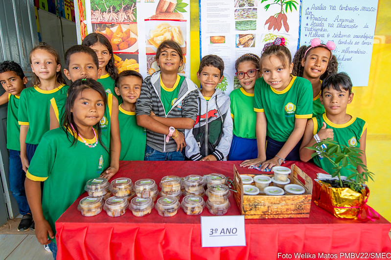 Além de apresentação musical com os instrumentos de material reciclado, os alunos da escola do campo Aureliano Soares levaram o melhor da culinária da região para degustação. Teve bolo de macaxeira, pé de moleque, doce de banana, lasanha de berinjela, suco detox de laranja com couve, bolo e farinha da batata-doce, doce de abóbora. Os alunos da EJA levaram geleia e molhos de pimenta, além da caldeirada e peixe no tucupi.