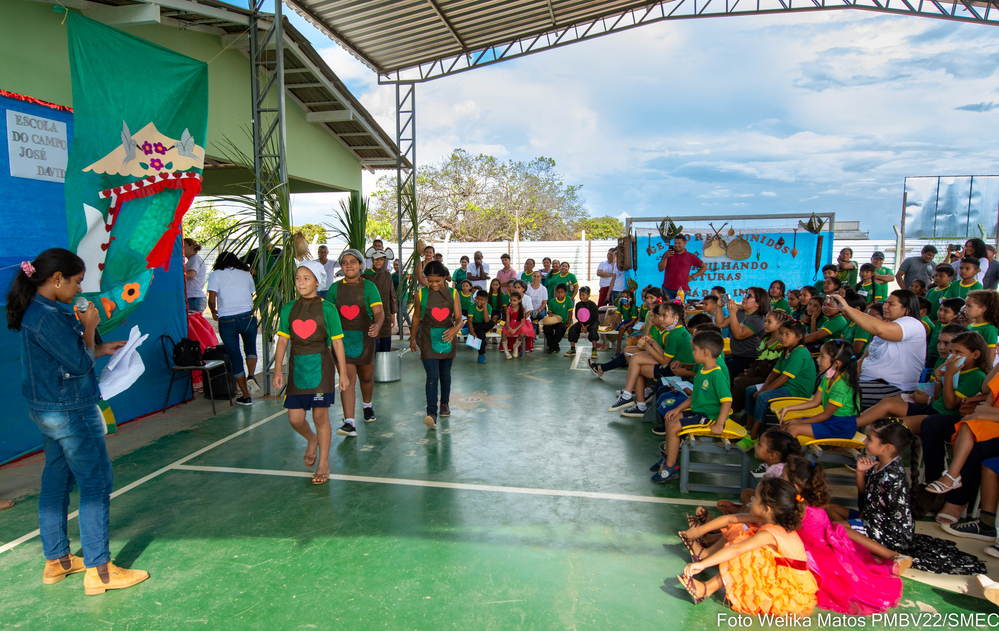 “Mais uma vez nos reunimos para apresentar nosso trabalho. Como povo indígena, temos na escola o ensino da língua macuxi e wapichana, uma forma da prefeitura nos ajudar a preservar a nossa cultura, o modo de viver, os costumes e a nossa tradição. E hoje apresentamos tudo isso para as outras escolas que não são indígenas”, disse Marques Augustinho, professor responsável da escola Vicente André.