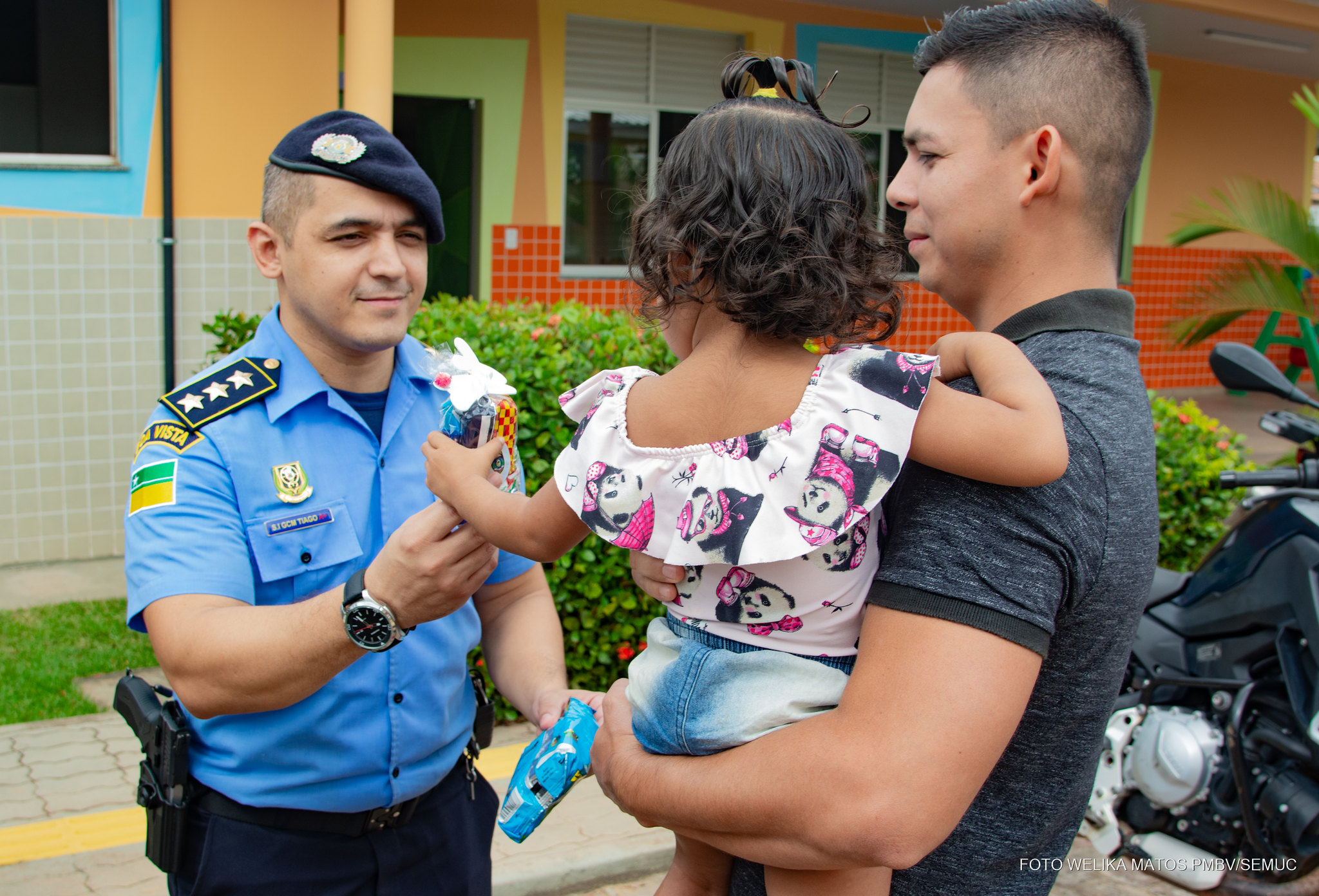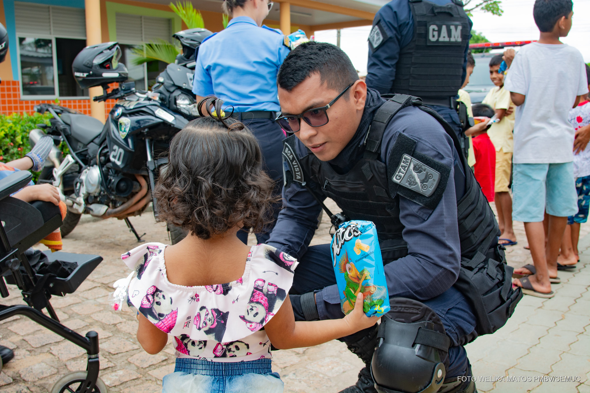 “É uma felicidade grande olhar para essas crianças e manifestar o carinho. Vendo nosso trabalho, a farda e os nossos veículos, é até uma forma delas se espelharem para serem da área da segurança, no futuro”, disse.