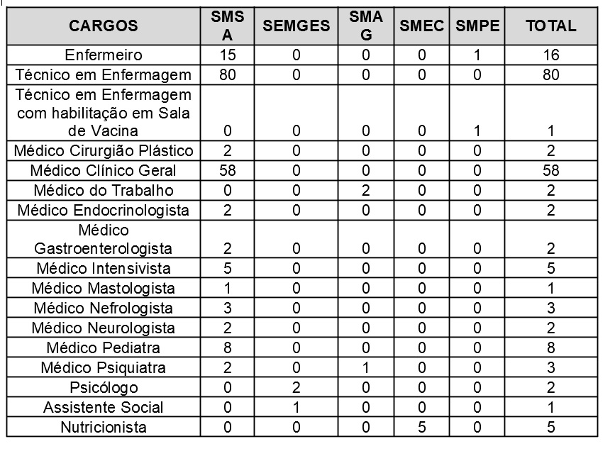 São disponibilizadas 193 vagas para área técnica e médicos especialistas