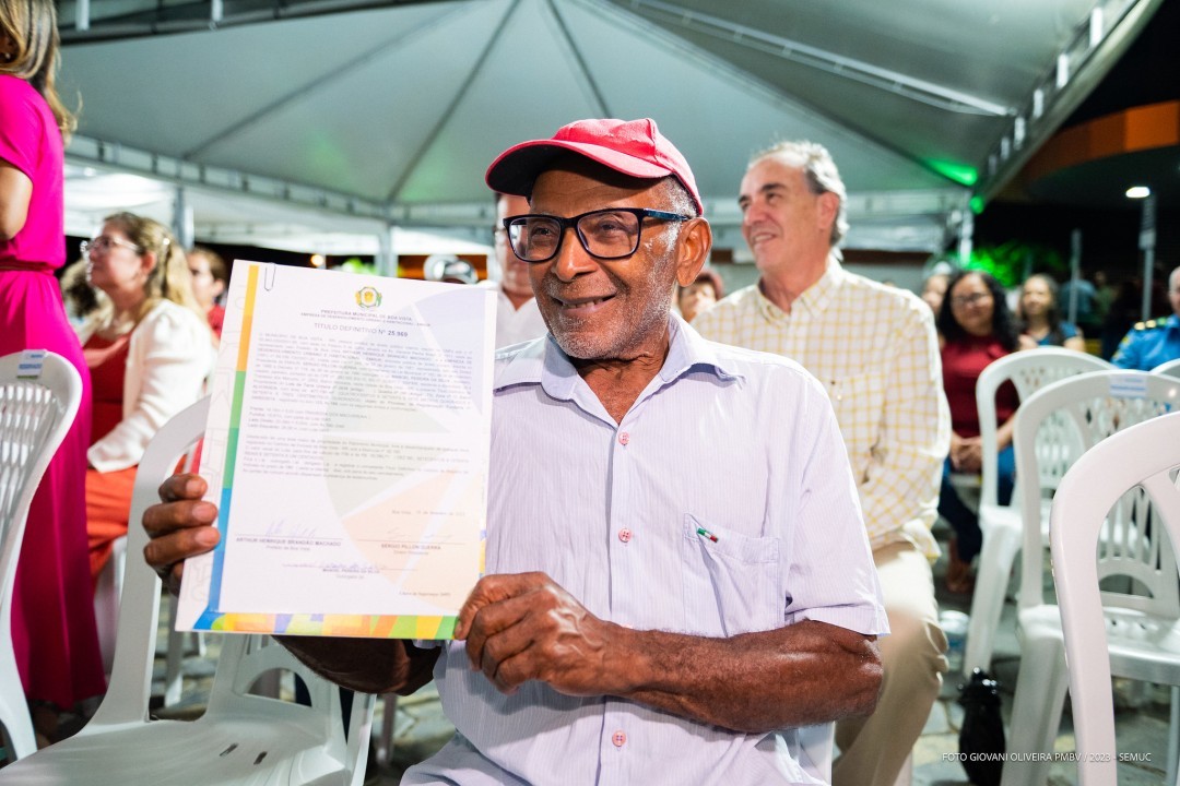 Essa quinta-feira, 30, foi especial para mais de 550 famílias de Boa Vista que receberam os títulos definitivos da Prefeitura de Boa Vista, documento que garante, de fato, segurança jurídica e a posse legal do imóvel em que vivem há anos. São pessoas que esperavam pelo sonho realizado. É o caso do aposentado Manoel Pereira da Silva, de 75 anos, que agora pode dizer que é dono da casa onde vive com a família no bairro Alvorada.