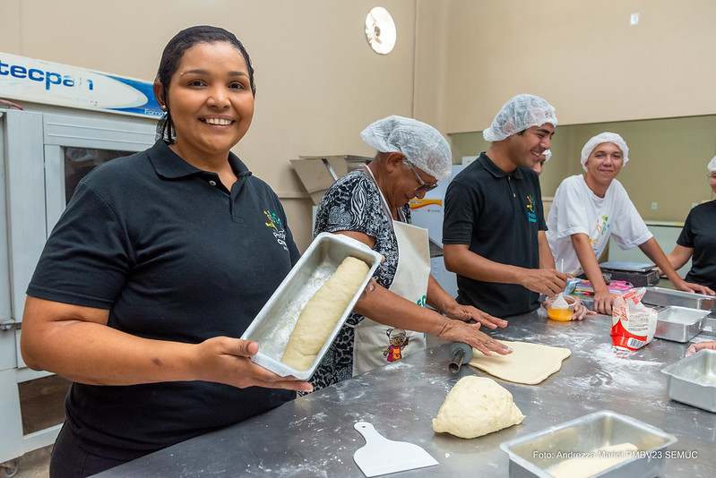 A primeira convidada para compartilhar a deliciosa arte da panificação com os alunos foi a aposentada Deuzuita Oliveira, de 81 anos, do Centro de Referência de Assistência Social (CRAS) do bairro Pintolândia, que se mostrou animada com a nova experiência. Nas mãos da aposentada e dos alunos do Projeto Crescer, o alimento mais popular do mundo ganha forma. O pão é feito com farinha de trigo, ovo, leite, açúcar, óleo, fermento biológico seco, sal, manteiga e orégano.