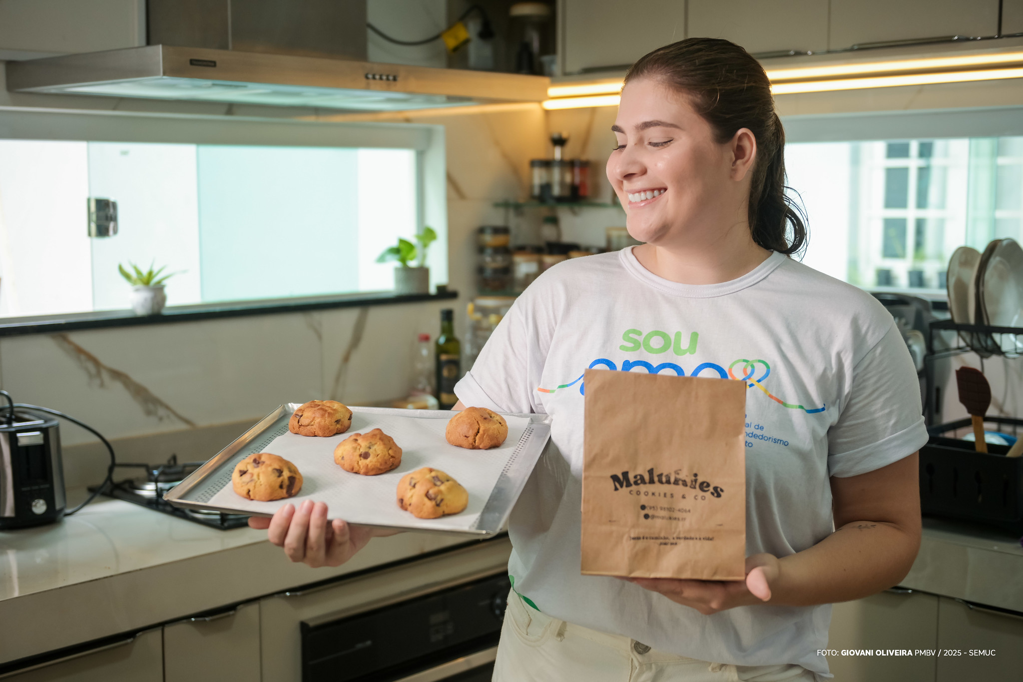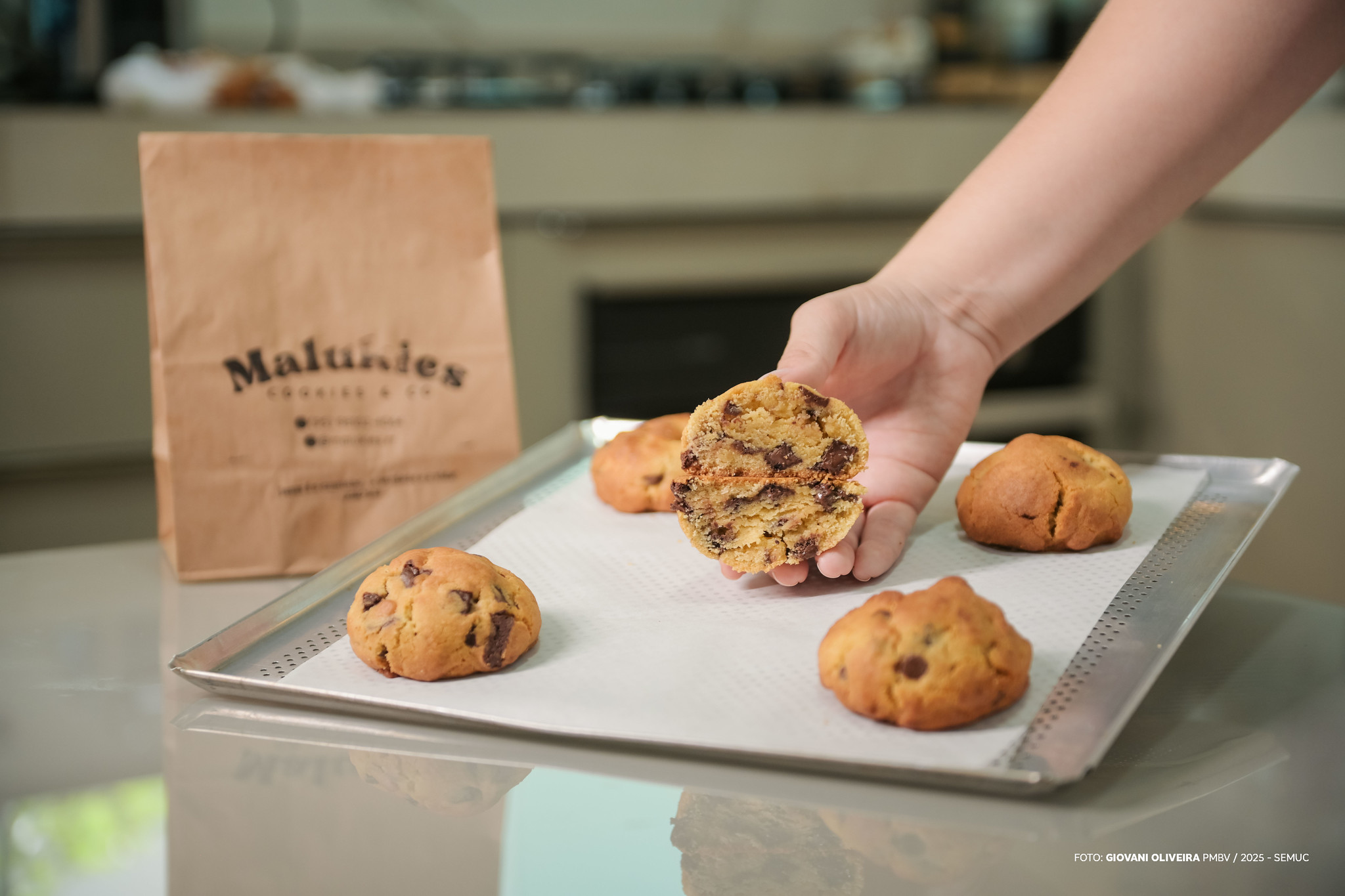 Atualmente, o negócio funciona por delivery, com pedidos feitos via WhatsApp disponível nas redes sociais. Os cookies variam de R$ 10 (tradicional) a R$ 22 (recheado). Para impulsionar o projeto, ela contou com o apoio da AME BV, onde teve acesso a orientação técnica, capacitações e crédito facilitado.