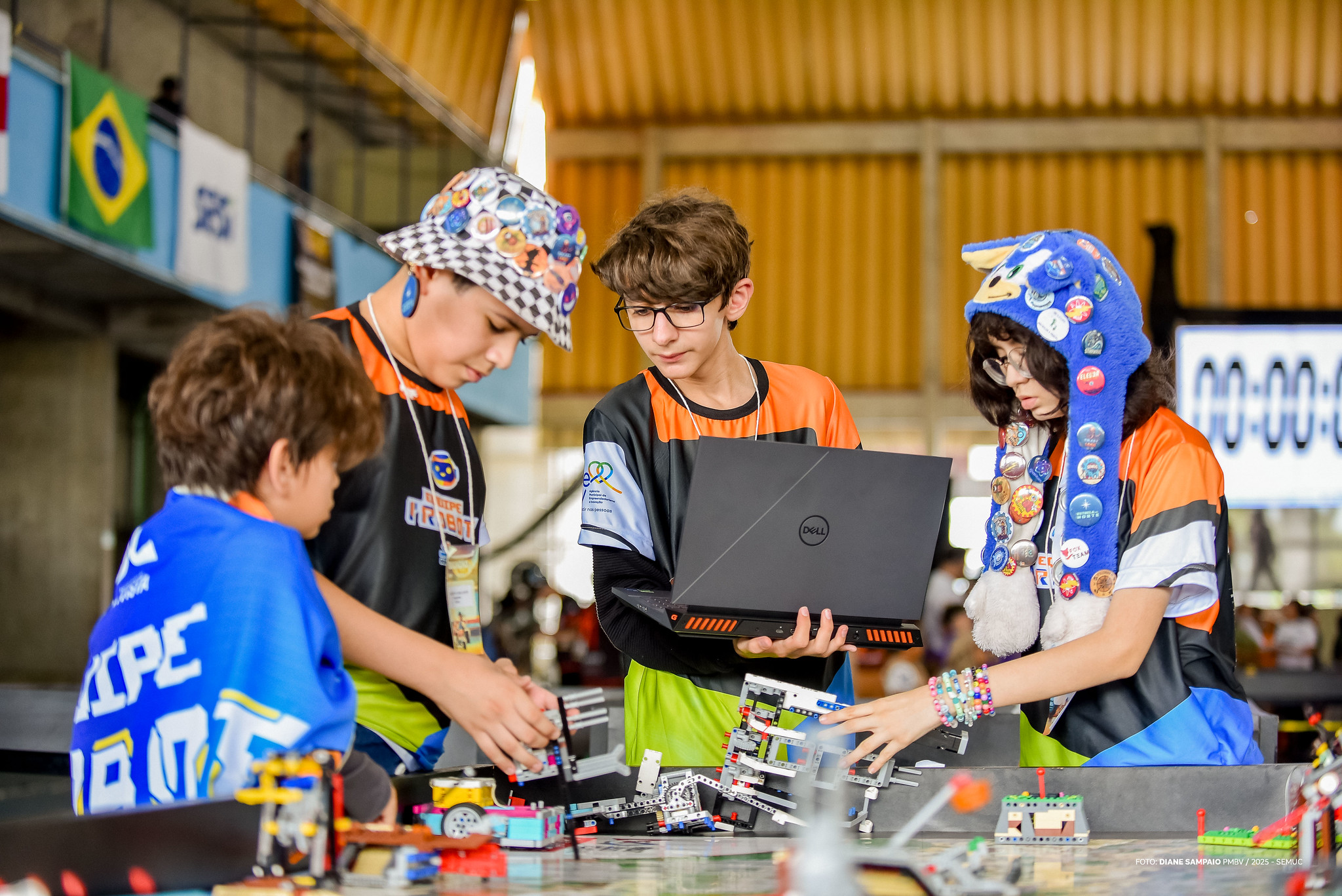 O robô da equipe I’Robot, foi pensado e montado por Felipe Louçana, de 14 anos, Samuel Vargas, de 11 anos, Kauê Cavalcante, de 13 anos e Isabele Vargas, de 13 anos. Crianças fascinadas por ciência, tecnologia, engenharia e matemática. Cada um deu o seu melhor na arena no primeiro dia de competição.