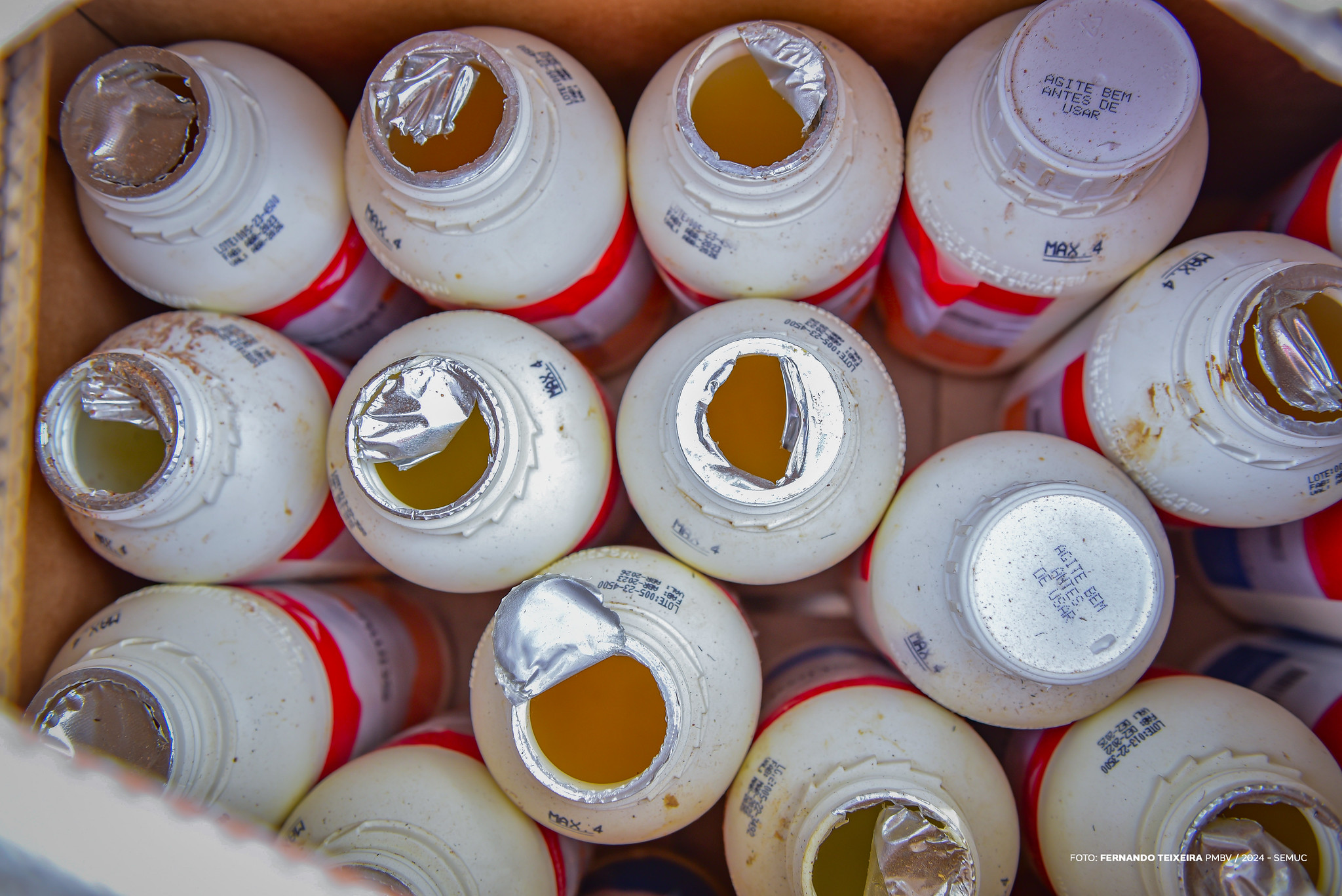 Os agricultores devem fazer a lavagem das embalagens vazias com água, por três vezes, para evitar resíduos tóxicos, após o uso do produto. Em seguida, devolver os recipientes nos postos de coleta autorizados pela prefeitura, onde serão destinados ao descarte seguro.