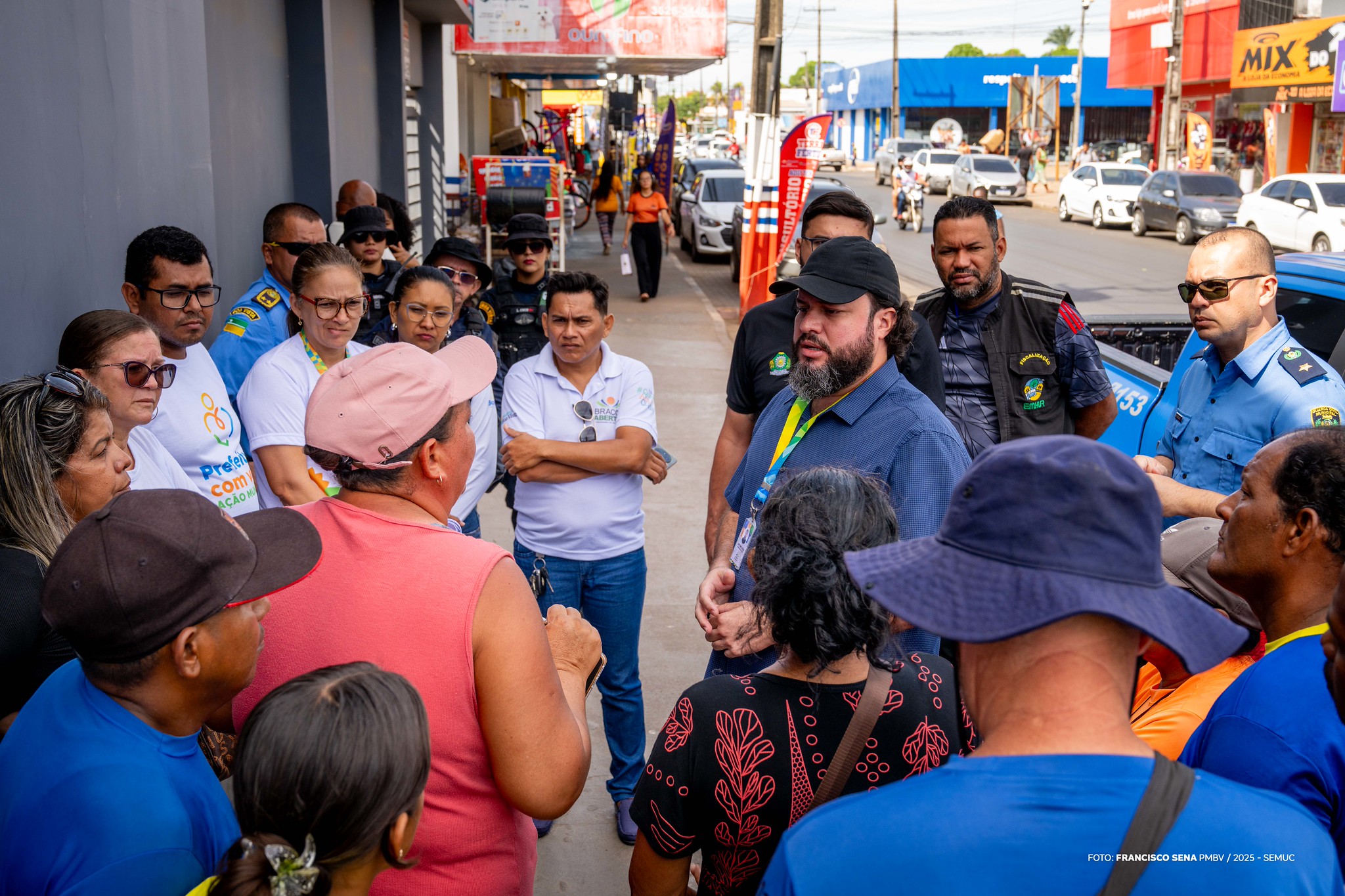 Com o aumento da movimentação comercial neste fim de ano, a Guarda Civil Municipal (GCM), intensificou o patrulhamento preventivo e comunitário na zona Oeste de Boa Vista. Nesta sexta-feira, 19, orientaram ambulantes na Av. Ataíde Teive, numa ação em parceria com a Empresa de Desenvolvimento Urbano e Habitacional (EMHUR) e com a Secretaria Municipal de Assistência e Desenvolvimento Social (SEMADS).
