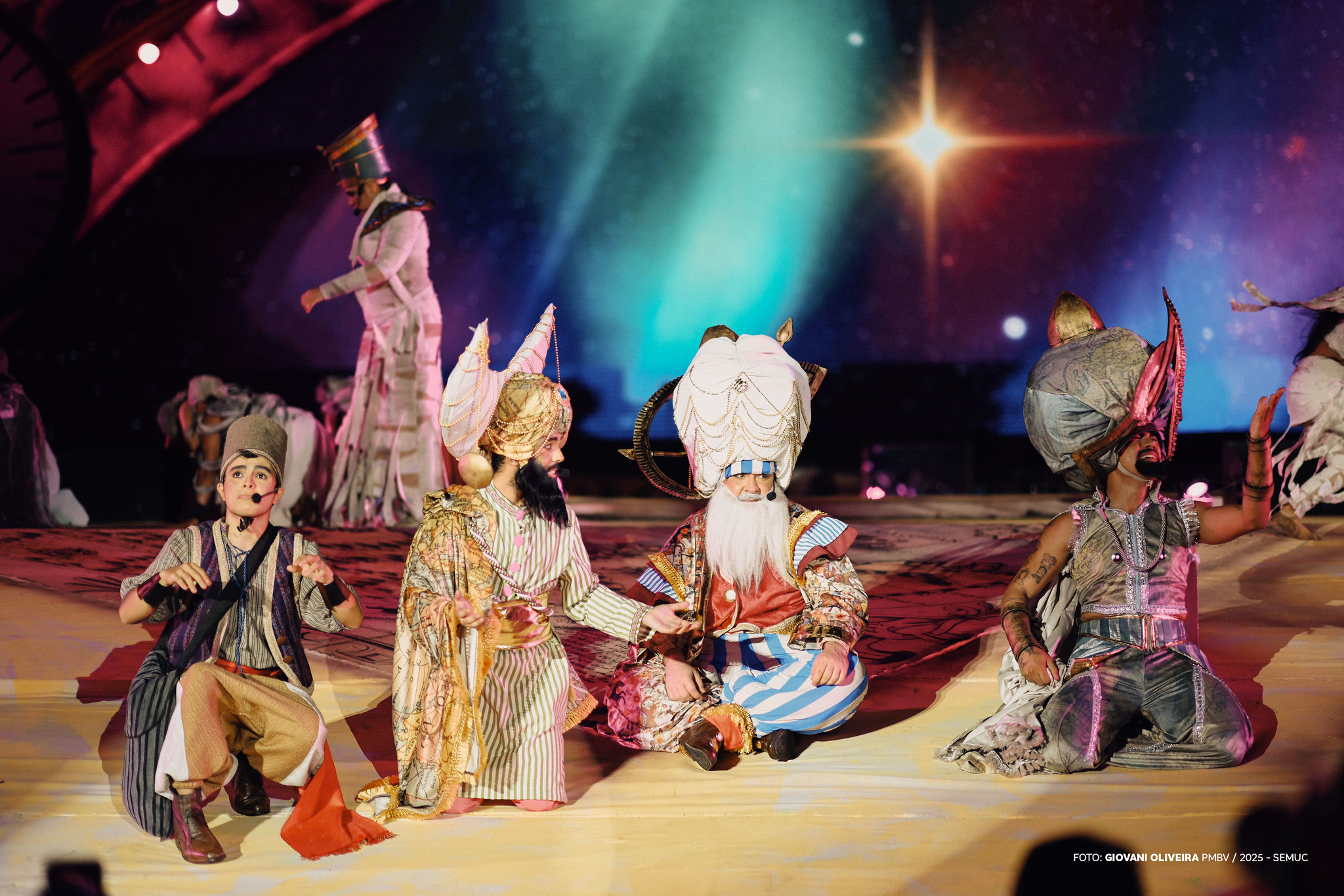 Com cerca de 2h de duração, o espetáculo levou o público a uma viagem ao lado dos Três Reis Magos e do jovem aprendiz Azim, unindo música, teatro e performances em uma estrutura cenográfica grandiosa, montada em uma área de aproximadamente 1.500 m².