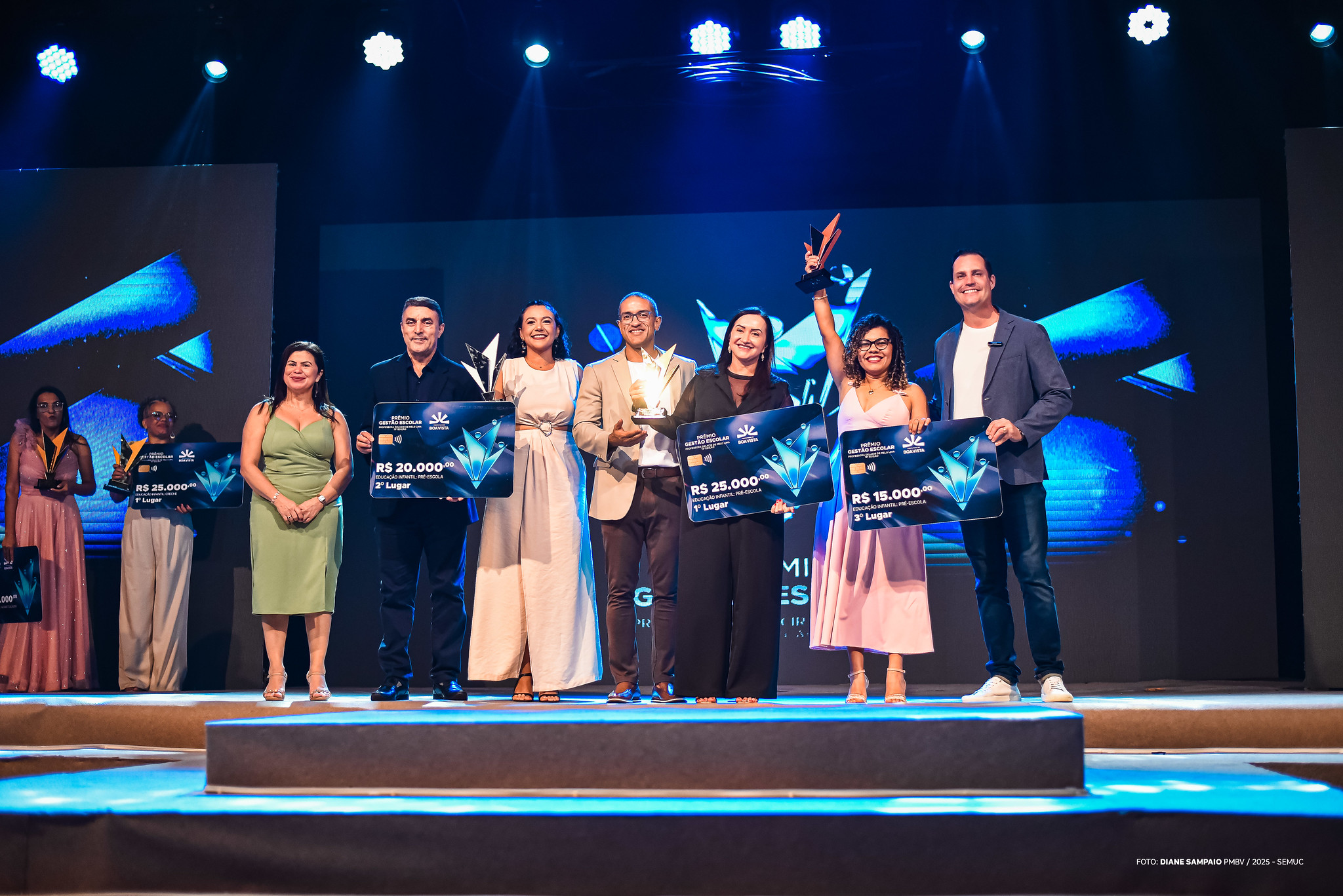 A grande vencedora desta edição foi a Escola Municipal Raimundo Eloy Gomes, que conquistou dois primeiros lugares e recebeu R$ 45 mil, destinados exclusivamente a investimentos pedagógicos e administrativos. A unidade foi premiada na categoria Destaque Alfabetização, com R$ 20 mil, e na categoria Ensino Fundamental – Grande Porte, com R$ 25 mil.