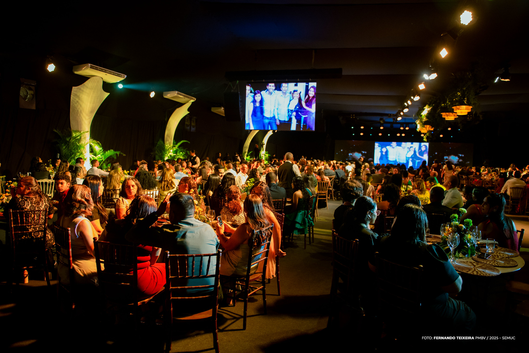 A 12ª edição do Prêmio Meritocracia reuniu, nesta segunda-feira, 8, professores da Rede Municipal de Ensino em uma noite de celebração, no Parque do Rio Branco. Com cerca de 900 inscrições, o maior número já registrado, o evento bateu recorde de participantes e reconheceu o talento e a dedicação dos educadores de Boa Vista.