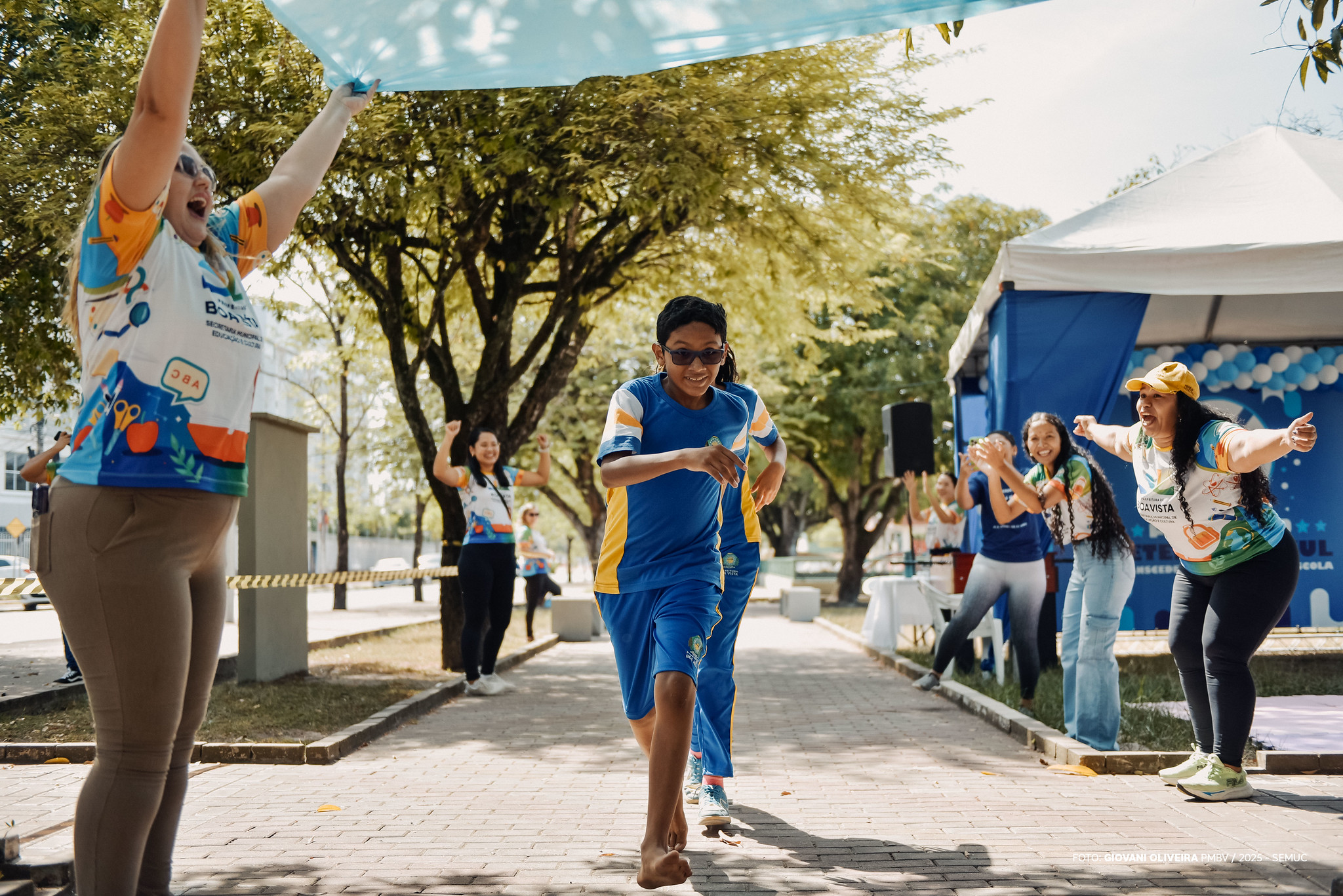 Os 35 alunos são das escolas polos Ana Sandra Nascimento, Emília Rios, Luiz Canará, Newton Tavares, Hilda Franco, Laucides Inácio Oliveira e Francisco Bríglia. Durante a atividade, crianças e seus educadores correram juntos pela valorização da causa.