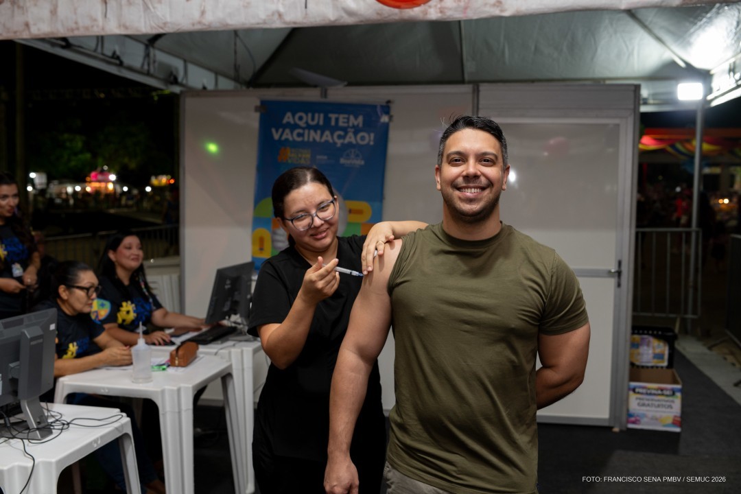 Outra ação importante é a tenda de vacinação, onde estão disponíveis imunizantes do calendário nacional. A iniciativa facilita o acesso da população às vacinas, permitindo que os foliões atualizem a caderneta de forma prática enquanto participam da programação.