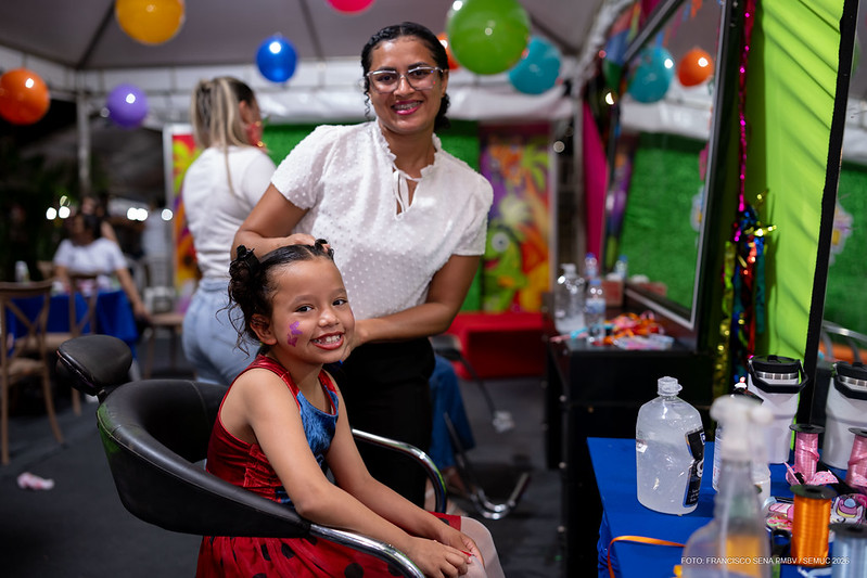 Um dos destaques na Praça Fábio Marques Paracat é a tenda recreativa, voltada especialmente para o público infantil. No local, são oferecidos serviços de maquiagem, penteados, pintura facial, jogos e atividades lúdicas, proporcionando momentos de diversão e integração para as crianças. A estrutura também conta com espaço de amamentação e fraldário, disponibilizados por meio do Programa Família que Acolhe, garantindo conforto e apoio às mães e bebês durante a festa.