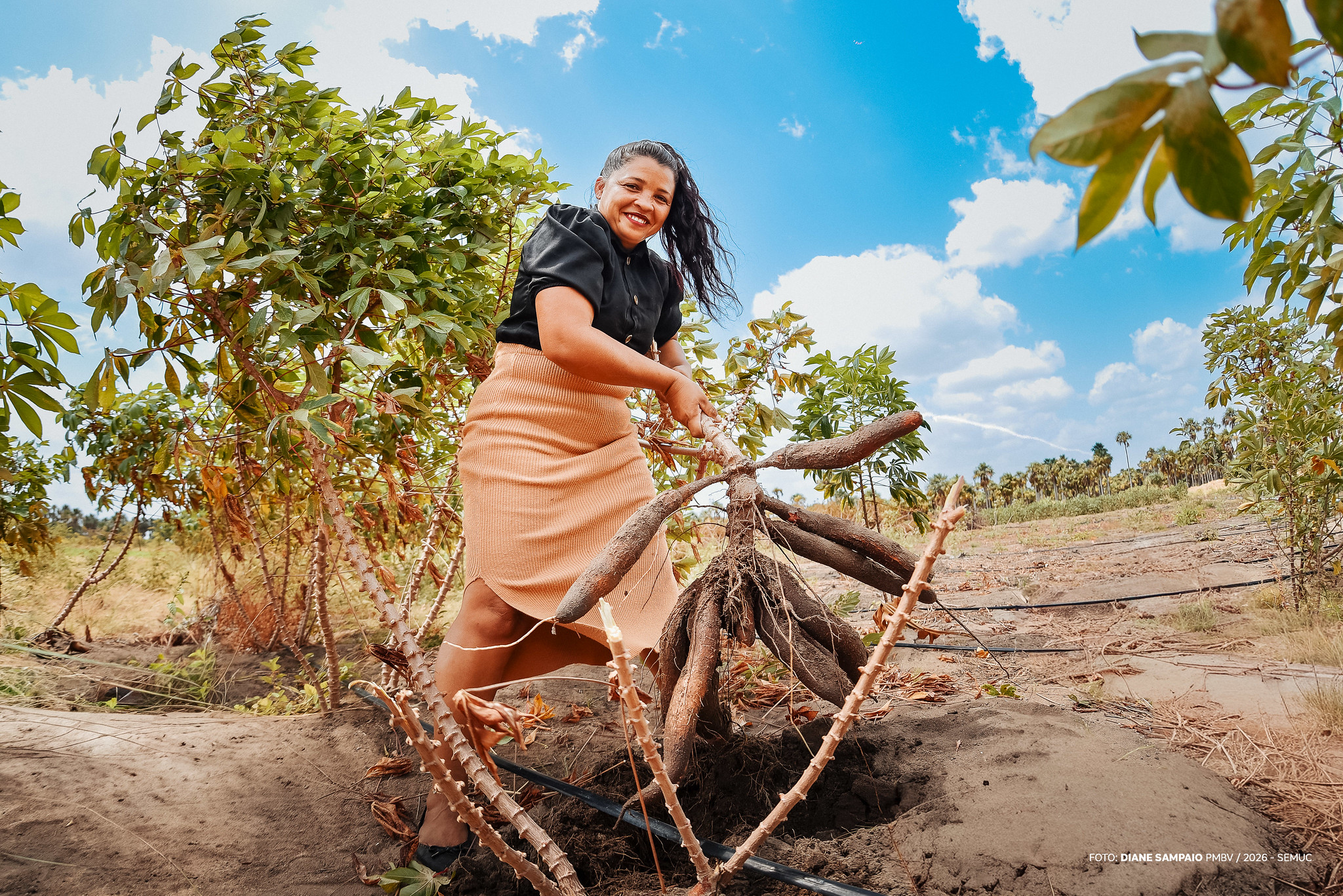 “Trabalho como merendeira em uma escola e aqui na roça com a minha família. Contamos com o sistema de irrigação da prefeitura para conseguir produzir mandioca o ano inteiro e assim não parar a produção de farinha. É uma correria sem fim, mas estamos conseguindo vencer e já estamos planejando ampliar a roça. Vamos aumentar o tamanho da área irrigada”, contou.