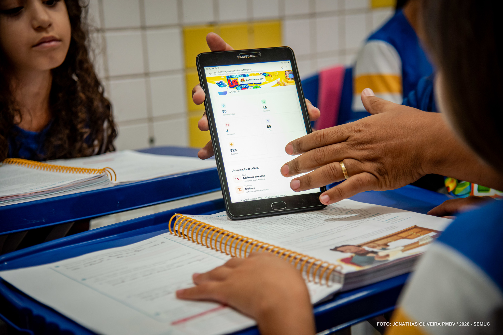 Desafios enfrentados por alunos nas etapas iniciais da aprendizagem têm sido sanados com o auxílio do aplicativo “Leitura em Jogo”, desenvolvido na Escola Municipal Juslany de Souza Flores, localizada no bairro Jardim Tropical. De forma prática, organizada e interativa, a ferramenta educativa analisa a leitura e fluência das crianças que estão em processo de alfabetização.